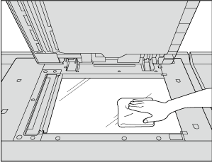 Raise the ADF, then clean the original glass with a clean soft cloth. Wipe the original glass clean with a clean soft cloth dampened slightly with water, when it is difficult to clean.