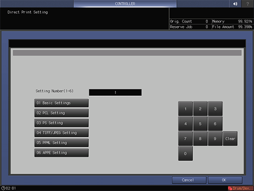 This screen is displayed if you select Direct Print Setting - Basic Settings in the Controller Machine Setting Menu screen. For details about how to display the Controller Machine Setting Menu screen, refer to Overview of Controller.