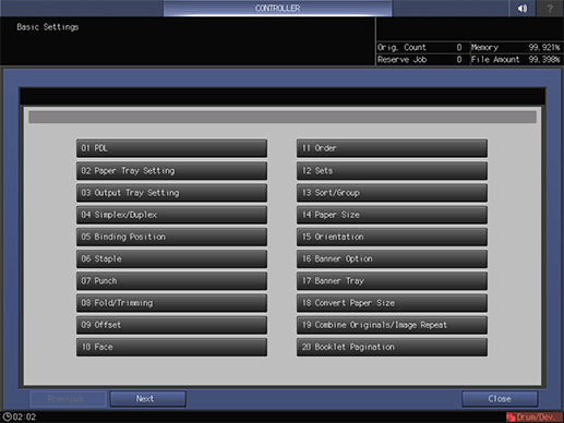 Basic Settings | Specifies default settings for the functions such as Simplex/Duplex, Paper Tray Setting, and Output Tray Setting. |