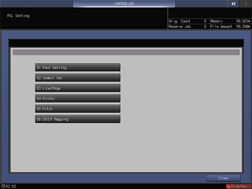 This screen is displayed if you select Direct Print Setting - PCL Setting in the Controller Machine Setting Menu screen. For details about how to display the Controller Machine Setting Menu screen, refer to Overview of Controller.