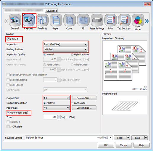 • When setting in the printer driver, make sure that there are no previous settings left in each item in the tabs Layout, Finishing, Cover, etc.