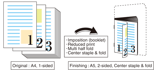 Impose an A4-size PDF document with 32 pages on A4 papers (reduced size), and then finish with the booklet function.