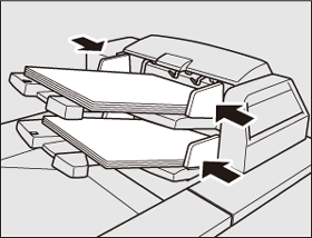 • Do not load more than 500 sheets (80 g/m2 / 21 lb Bond) for each of the upper tray and lower tray. Also, do not load above the limit line indicated on the side guides.
