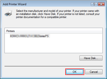 supplementary explanationFor the SMB connection, click Next, and then click OK in the Connect to Printer page that appears.