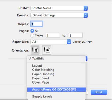 Select AccurioPress C6100/C6085PS from the pull-down list of the dialog box, and click Set.