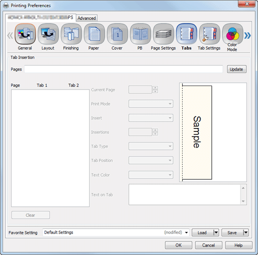 Pages | - | Specify a page to insert a tab. To apply the setting, click Update. |
