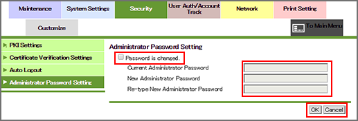 Click Administrator Password Setting on the menu of Security tab to display this screen.