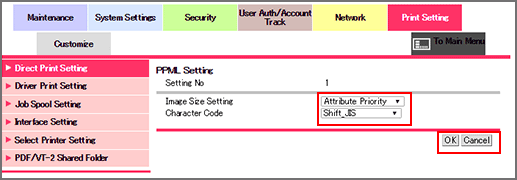 Select either Resolution Priority or Attribute Priority from the Image Size Setting drop-down list. Select Shift_JIS, windows-1252, x-mswin-936, x-windows-949, or x-MS950-HKSCS from the Character Code drop-down list.