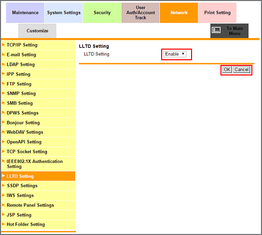 Select either Enable or Disable from the LLTD Setting drop-down list.