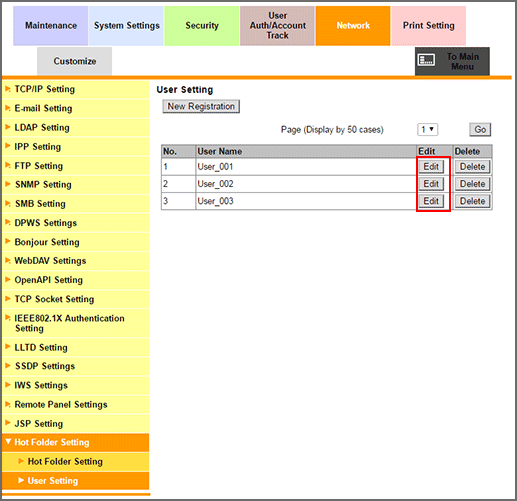 Click Edit of the user to be edited.