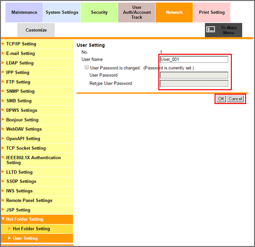 Click OK. Clicking Cancel cancels the setting.