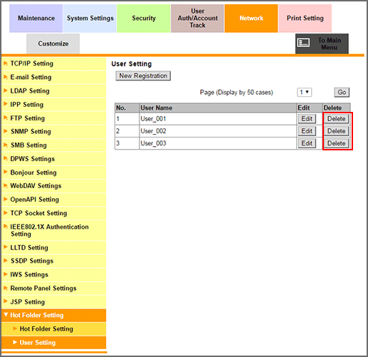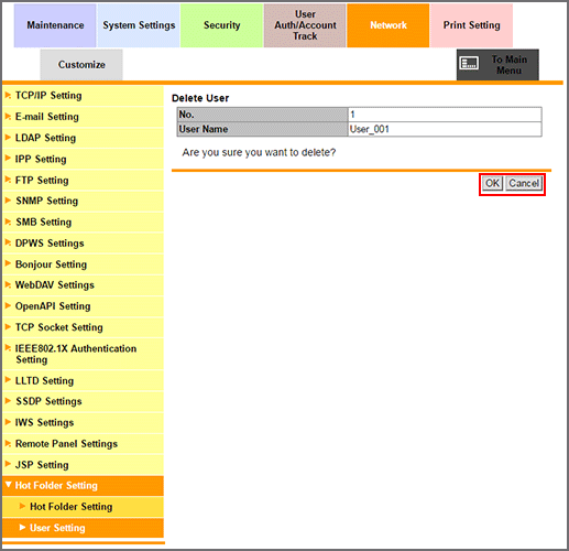 2. Click OK on the confirmation screen. Click Cancel to cancel the deletion.