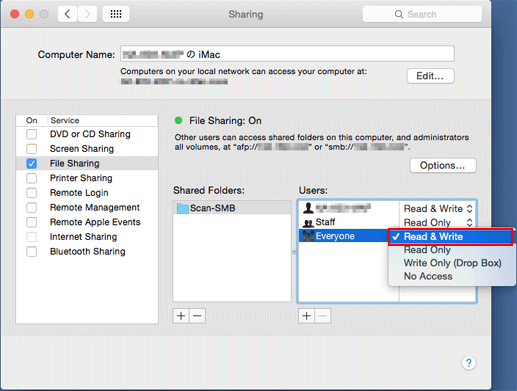 Create a shared folder on the Macintosh computer. You can receive the scan data sent from the machine to the shared folder and share it with a client computer.