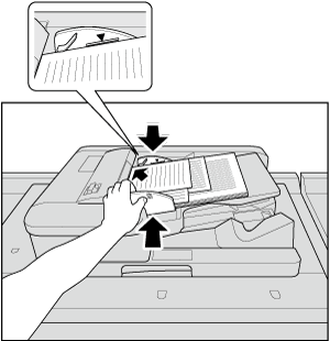 Do not load over the limit of the document feeder capacity or over the limit line indicated on the original guides; otherwise the original may be misfed or damaged, or machine trouble may be caused.