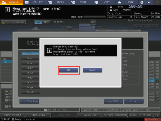 3. Load the tray selected in step 2 with paper of the conditions displayed as Reserved Setting.