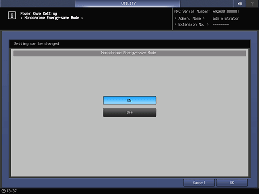 supplementary explanationFor subsequent operations, follow the same procedure as that in User Setting - System Setting - Power Save Setting - Mono Energy-save Mode. For details, refer to [Mono Energy-save Mode].