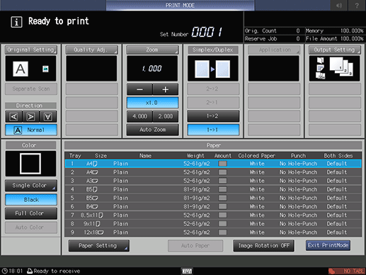 Set A3 short edge feed paper or 11 17short edge feed paper into the tray to be adjusted, select that tray and then press Start on the control panel.