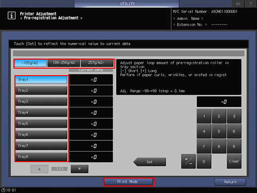 If any adjustment is required, press Exit PrintMode to return to the Pre-registration Adjustment screen.