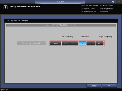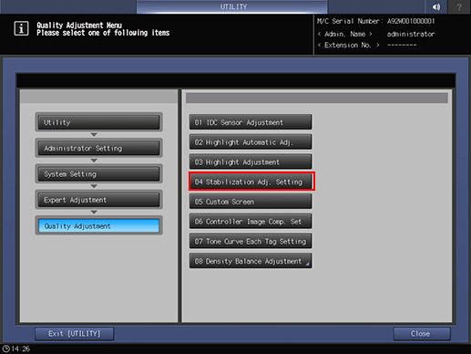 Press System Setting on the Administrator Setting Menu screen, and then press Expert Adjustment, Quality Adjustment, and Stabilization Adj. Setting in sequence.
