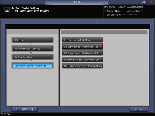 Press System Setting on the Administrator Setting Menu screen, and then press Operation Screen Customize and Copy Screen Customize Set in sequence.