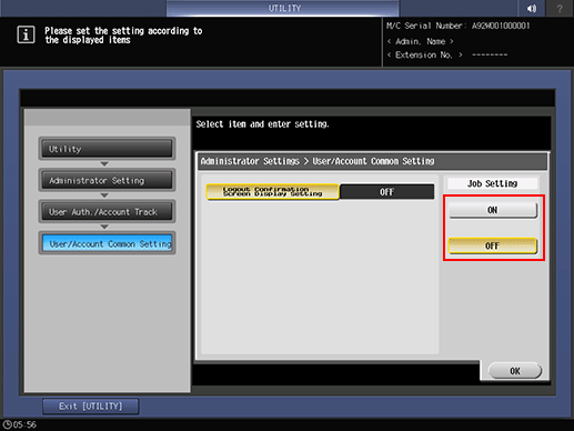 3. Press the Logout Confirmation Screen Display Setting, and select ON or OFF on the right.