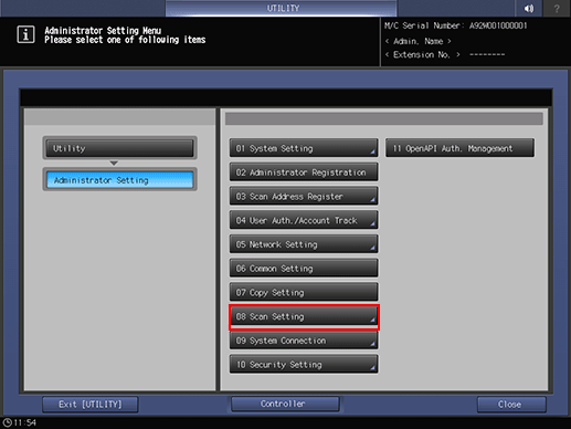 2. Press Scan Setting on the Administrator Setting Menu screen.