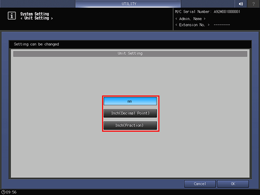 • supplementary explanationTo cancel the change, press Cancel. In either case, the screen returns to the System Setting Menu screen.