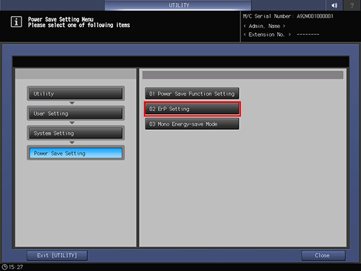 2. Press System Setting on the User Setting Menu screen, and then press Power Save Setting and ErP Setting in sequence.
