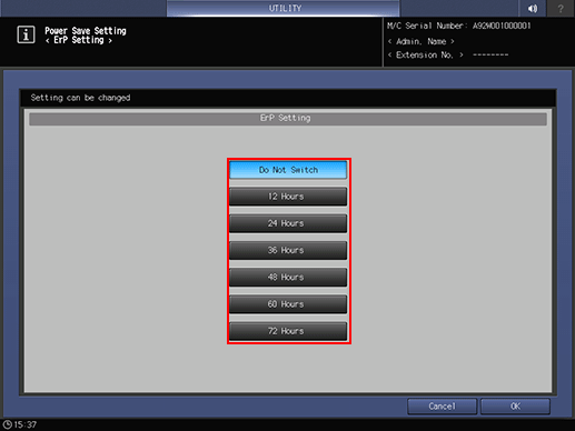 Select the period of time after which the ErP Setting function is activated. Select Do Not Switch to deactivate the ErP Setting function.
