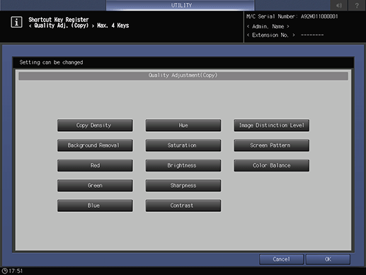 • Up to 4 shortcut keys can be displayed under Quality Adj. on the STORE screen.