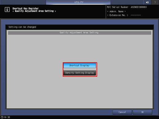 • supplementary explanationSelect either Shortcut Display or Density Setting Display.