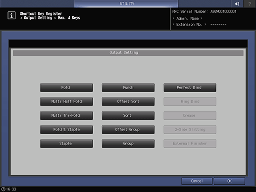 • supplementary explanationSelect the desired output setting function buttons. Up to 4 keys can be selected.