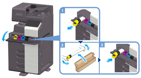 The following example shows how to replace a Yellow Toner Cartridge.