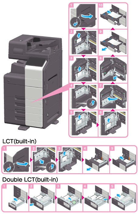 When removing pieces of paper in the paper tray (Tray 1/2)