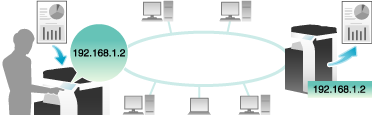 IP Address Fax is a function used to send and receive faxes within a limited network such as an enterprise network.