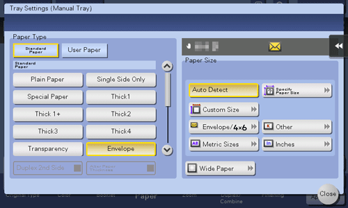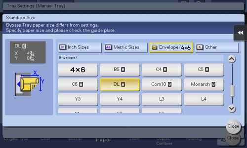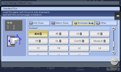 When loading envelopes with flaps opened, also select the standard size that matches them. You do not have to measure the size of the envelope with the flap opened to set the size as a custom-sized envelope.