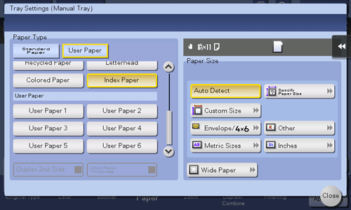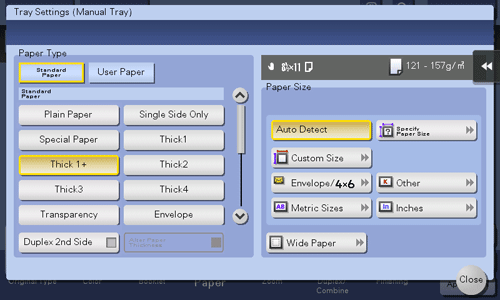 When selecting a paper size other than for paper trays or printing on envelopes or transparencies, use the Bypass Tray.