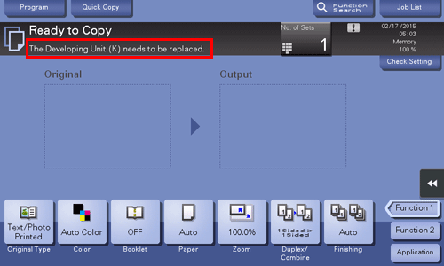 When it is almost time to replace a Developing Unit, an advanced warning message appears.