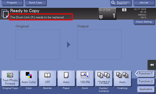 When it is time to replace a Drum Unit, a replacement prompt message appears. Replace it based on the maintenance contract. Tap [Start Guidance] to display the replacement procedure on the screen and check it.