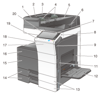 10 | Toner Cartridge | This machine provides Toner Cartridge in four colors: cyan (C), magenta (M), yellow (Y), and black (K). A full-color image is created by combining the four toner colors. |