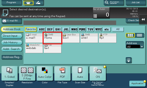 To send scanned original data to a shared folder on the server or your computer, select the [Home] key.