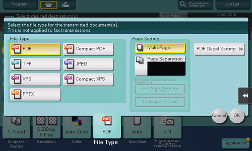 [PDF Detail Setting] | If [PDF] or [Compact PDF] is selected for file format, you can configure the PDF option settings. You can enhance security by attaching a digital signature that identifies the author of the file, by file encryption, etc. For details, refer to Here. |