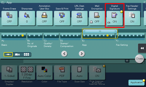 If you cannot change the [ON] or [OFF] state, it is assumed that whether or not a digital signature is always added is specified by the administrator.