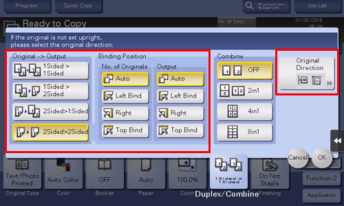 If you have selected other than [1Sided > 1Sided], also specify [Binding Position] and [Original Direction].