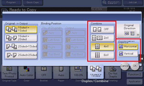 To copy multiple pages on the same side of a single sheet ([Combine])