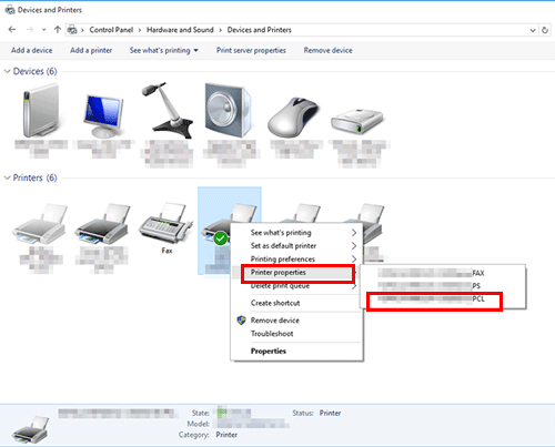 • Right-click the icon of the installed printer, and from [Printer properties], click the displayed printer name.
