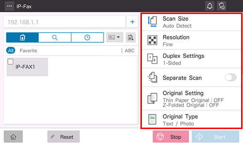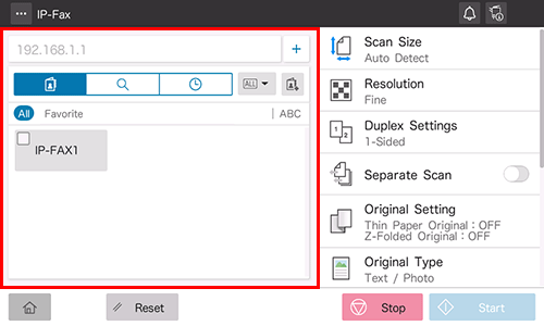 Using the Stop key enables you to stop scanning the original. A list of the currently stopped jobs is displayed. To stop transmission, select the target job from the list, and delete it.
