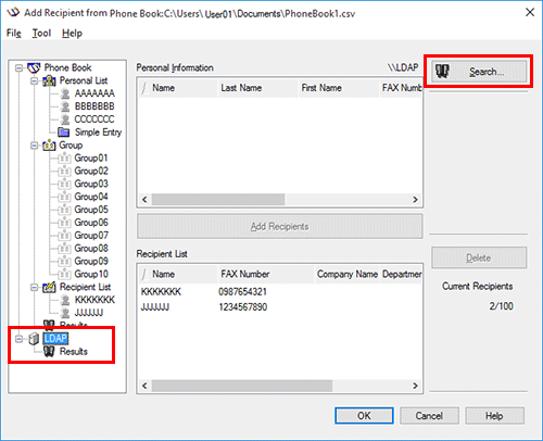 If you are using the LDAP server or the Active Directory of Windows Server, you can search for a recipient on the server.