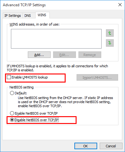 In [NetBIOS Settings], select [Disable NetBIOS over TCP/IP].