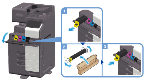 The following example shows how to replace a Yellow Toner Cartridge.